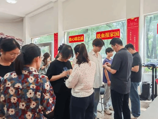 活动在雄壮的国际歌中拉开序幕,光辉和党支部书记共同为新党员佩戴党徽。