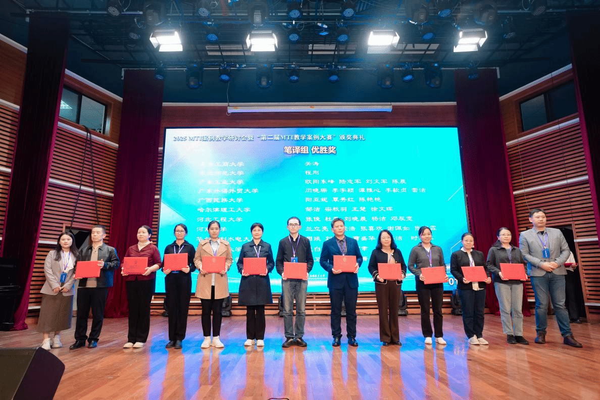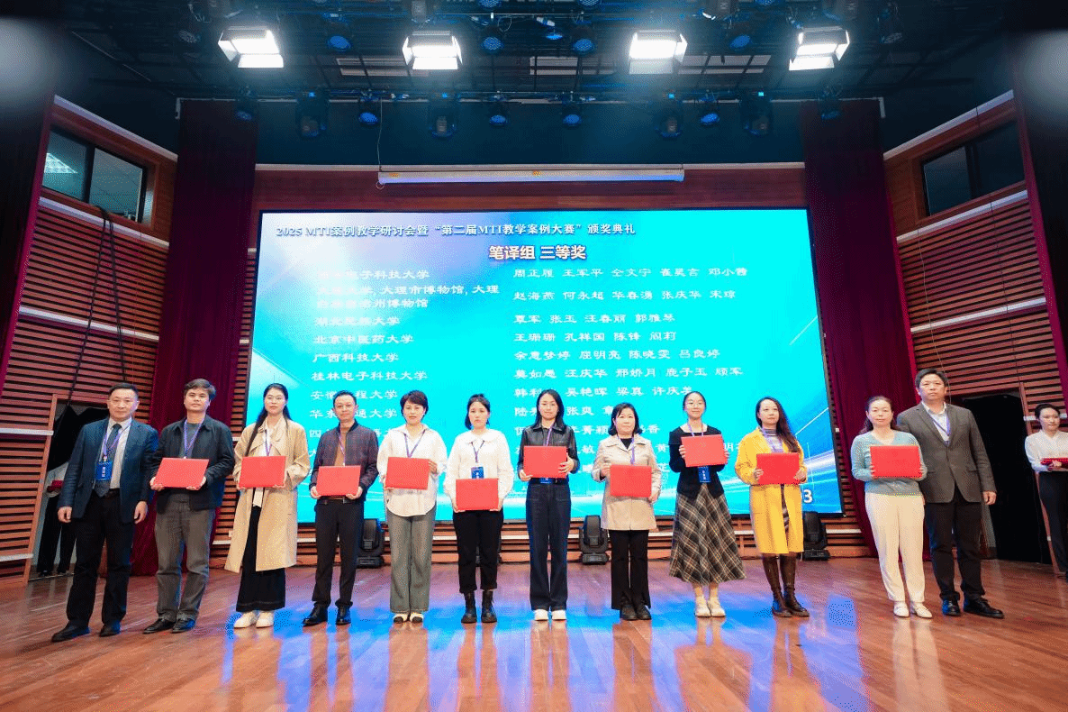 11月1日,2025MTI案例教学研讨会暨“第二届MTI教学案例大赛”颁奖典礼在上海应用技术大学(奉贤校区)成功举办。本届MTI教学案例大赛由全国翻译专业学位研究生教育指导委员会指导,上海市科技翻译学会主办,吸引了来自全国120余所院校参赛。大赛分为笔译组、口译组、翻译技术组和翻译项目管理组四个组别。我院陆秀英老师团队荣获笔译组三等奖,裘白莲老师团队荣获笔译组优胜奖。