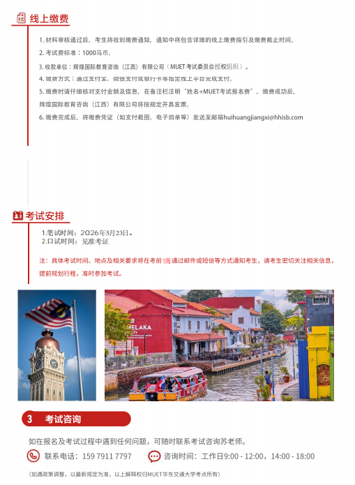 华东交通大学MUET考点即将在2026年5月23日举行笔试,报名截止日期2026年5月10日,详情如下: